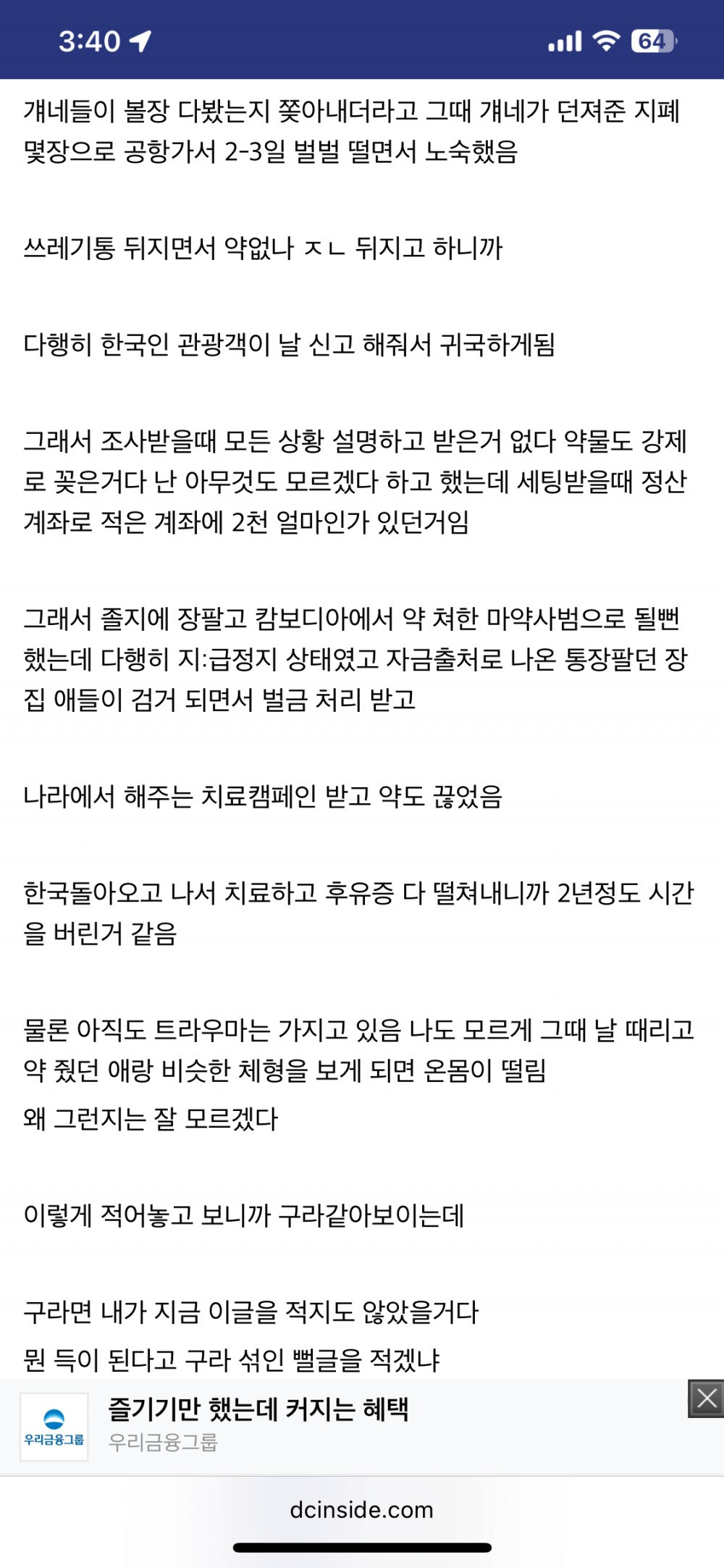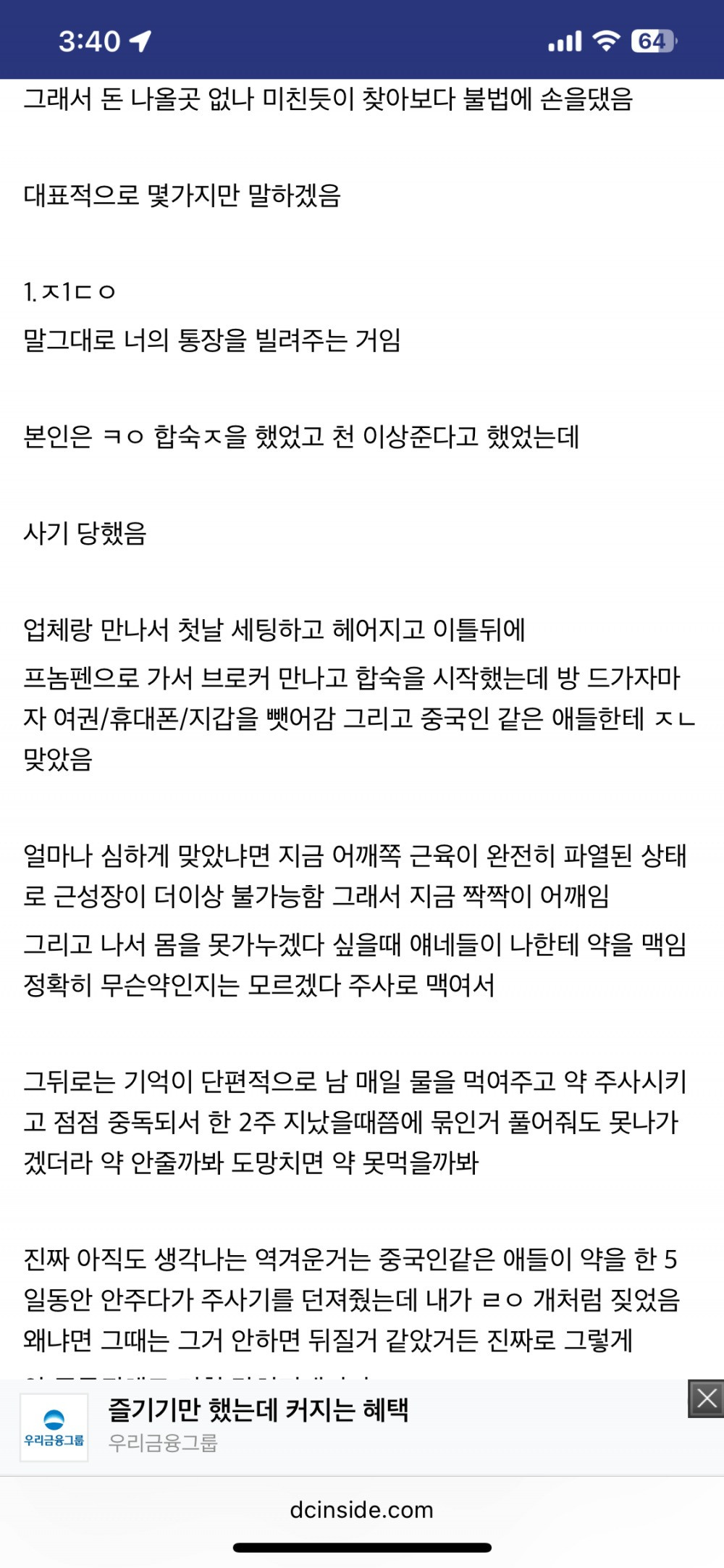 도박 중독자의 캄보디아 합숙 후기 컨텐츠 정보 5 조회 0 추천 목록 관리 글수정 글삭제 본문 0 추천 관련자료 이전 캄보디아 제목으로 넷플릭스 드라마 만들어야 함 작성일 2025.10.19 21:07 다음 트와이스 나연 은근히 매력적인 몸 작성일 2025.10.19 20:31 목록으로 < 이전 글 다음 글 > 댓글 0 등록된 댓글이 없습니다. Select File Upload File 목록 관리 글수정 글삭제 검색대상 제목내용제목+내용글쓴이글쓴이(코) 그리고 또는 검색어 검색하기 전체 280,036 / 1 페이지 RSS 게시물 정렬 날짜순 조회순 추천순 게시판 검색 번호 제목 날짜 조회 추천 번호280036 서울,경기 전체 토지거래허가제 실시 비유글 등록일 23:04 조회 5 추천 0 번호280035 솔로가수 규빈 3rd Single 'CAPPUCCINO' 2차 콘셉트 포토 등록일 22:43 조회 3 추천 0 번호280034 자영업 5년차가 말해주는 대한민국 진상썰의 현실 등록일 22:34 조회 3 추천 0 번호280033 시선강간 초고수 ㄷㄷ 등록일 22:31 조회 5 추천 0 번호280032 중국식 새우튀김이 위험한 이유 ㄷㄷ 등록일 22:31 조회 5 추천 0 번호280031 전세계에서 생선을 가장 형편없이 요리하는 나라 등록일 22:31 조회 5 추천 0 번호280030 유명 트럼펫 연주자, 서초구 빌딩 주차장서 숨진 채 발견 등록일 22:31 조회 3 추천 0 번호280029 장원영 vs 카리나... 유치원 ~ 고딩시절 얼굴 변천사 등록일 22:31 조회 4 추천 0 번호280028 경력 53년의 클래식 헤어 커트 달인 등록일 22:31 조회 4 추천 0 번호280027 설윤 때문에 묻히는 엔믹스 저평가 우량주 등록일 22:31 조회 1 추천 0 번호280026 한국행 미국 비행기에서 인종차별 당한 소유 등록일 22:31 조회 6 추천 0 번호280025 오늘자 신진서 vs 최정 남녀 바둑 최강자 매치업 결과 등록일 22:01 조회 3 추천 0 번호280024 경상도에서만 먹는다는 명절 음식 등록일 22:01 조회 3 추천 0 번호280023 필리핀 도피 범죄자 LCK 보다가 검거 ㄷㄷ 등록일 22:01 조회 3 추천 0 번호280022 현재 민심 개박살난 조세호 인스타 댓글 상황 등록일 22:01 조회 5 추천 0 번호280021 공부 잘하던 아들이 음악해서 아쉬운 엄마 등록일 22:01 조회 7 추천 0 번호280020 경주경찰서 지능범죄수사팀이 극대노한 보배드림 사진 등록일 21:10 조회 3 추천 0 번호280019 어린이집 식단 논란 등록일 21:10 조회 6 추천 0 번호280018 요즘 최고의 가성비 음식 등록일 21:10 조회 6 추천 0 번호280017 래딧에서 난리난 마이크로소프트 사칭 메일 등록일 21:10 조회 4 추천 0 번호280016 미개봉이 뭔뜻인지 모르는 당근판매자 등록일 21:10 조회 8 추천 0 번호280015 내년부터 남녀 통합채용 경찰청에 대응하는 소방청 등록일 21:10 조회 5 추천 0 1(current) 2345678910(next)(last)