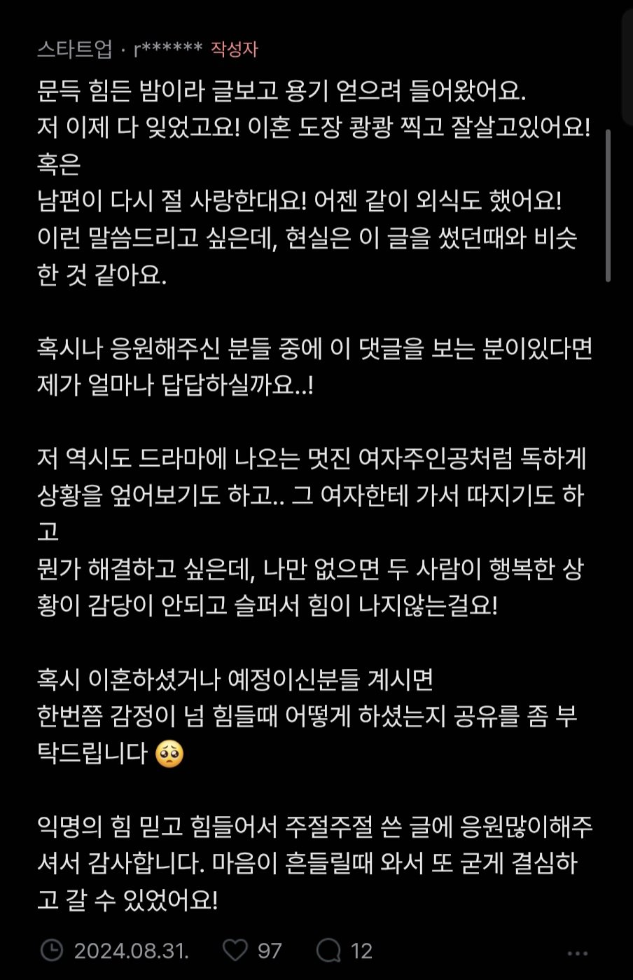 남편 잠옷 챙긴 블라인드 회원 후기 컨텐츠 정보 8 조회 0 추천 목록 관리 글수정 글삭제 본문 0 추천 관련자료 이전 장원영 빌라 1채 세금 ㄷㄷ 작성일 2025.11.14 21:13 다음 동아시아인 작은 췌장의 이점 작성일 2025.11.14 21:10 목록으로 < 이전 글 다음 글 > 댓글 0 등록된 댓글이 없습니다. Select File Upload File 목록 관리 글수정 글삭제 검색대상 제목내용제목+내용글쓴이글쓴이(코) 그리고 또는 검색어 검색하기 전체 284,519 / 1 페이지 RSS 게시물 정렬 날짜순 조회순 추천순 게시판 검색 번호 제목 날짜 조회 추천 번호284519 LPL 카나비 & 타잔 올해 받은 연봉 등록일 11.14 조회 3 추천 0 번호284518 이주빈 볼 때마다 신기한 거 등록일 11.14 조회 15 추천 0 번호284517 키 185cm 학폭 피해자 출신 연예인 등록일 11.14 조회 8 추천 0 번호284516 유튜브 뮤직 코리아 1년 간 아이돌 재생 횟수 순위 등록일 11.14 조회 9 추천 0 번호284515 스벅 왜 마감시간 영업종료 전부터 매장 청소하고 정리함? 등록일 11.14 조회 6 추천 0 번호284514 남극의 원균이라 불리는 로버트 스콧 등록일 11.14 조회 5 추천 0 번호284513 박평식 '나우유씨미3' 한줄평 등록일 11.14 조회 8 추천 0 번호284512 수시로 대학 가야 한다는 교사 등록일 11.14 조회 7 추천 0 번호284511 90년대 배달 족발 치킨 가격 등록일 11.14 조회 7 추천 0 번호284510 메가히트곡 맞다 vs 아니다 등록일 11.14 조회 7 추천 0 번호284509 여자들만 아는 여자 외모 평가 속뜻 등록일 11.14 조회 7 추천 0 번호284508 장원영 빌라 1채 세금 ㄷㄷ 등록일 11.14 조회 7 추천 0 열람 남편 잠옷 챙긴 블라인드 회원 후기 등록일 11.14 조회 9 추천 0 번호284506 동아시아인 작은 췌장의 이점 등록일 11.14 조회 5 추천 0 번호284505 백종원이 구워주는 미디엄 레어 스테이크 레시피 등록일 11.14 조회 3 추천 0 번호284504 고추장 소스 바른 칠면조를 만든 에드워드 리 등록일 11.14 조회 2 추천 0 번호284503 부동산 카페에서 조롱 받고있는 6평 원룸 1.6억에 산 여자 등록일 11.14 조회 4 추천 0 번호284502 영화 '세계의 주인' 관객수 근황 등록일 11.14 조회 6 추천 0 번호284501 과거 유튜브 세계 1위였던 퓨디파이 근황 등록일 11.14 조회 5 추천 0 번호284500 '아빠 어디가' 윤후 근황 ㄷㄷ 등록일 11.14 조회 4 추천 0 번호284499 미장 폭락 후 미주갤러 눈물의 인생 후회 등록일 11.14 조회 18 추천 0 번호284498 1시간만에 이별 당했다는 친구 등록일 11.14 조회 4 추천 0 1(current) 2345678910(next)(last)