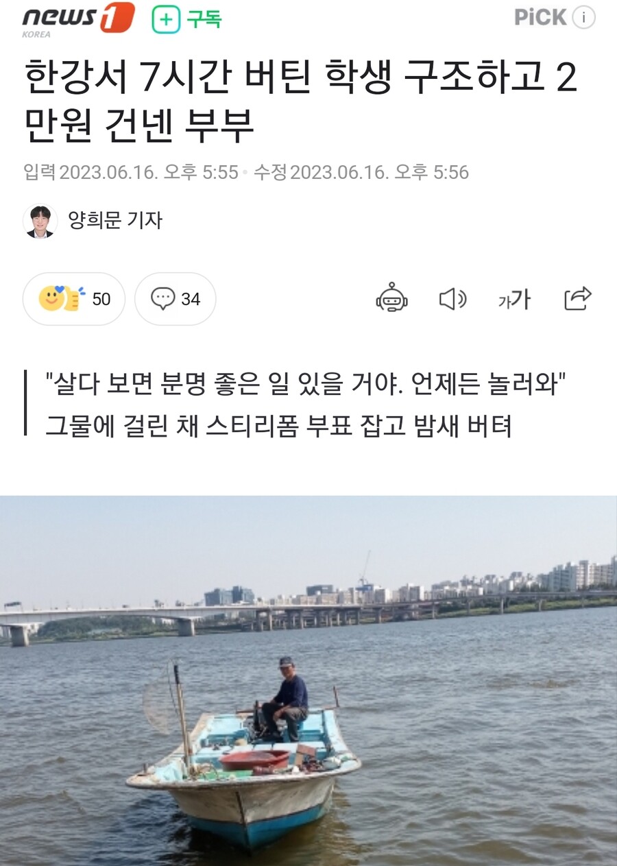 1KM 넘게 떠내려가다 부표를 잡고 7시간째 버티던 도중 어민이 발견해서 데리고와서