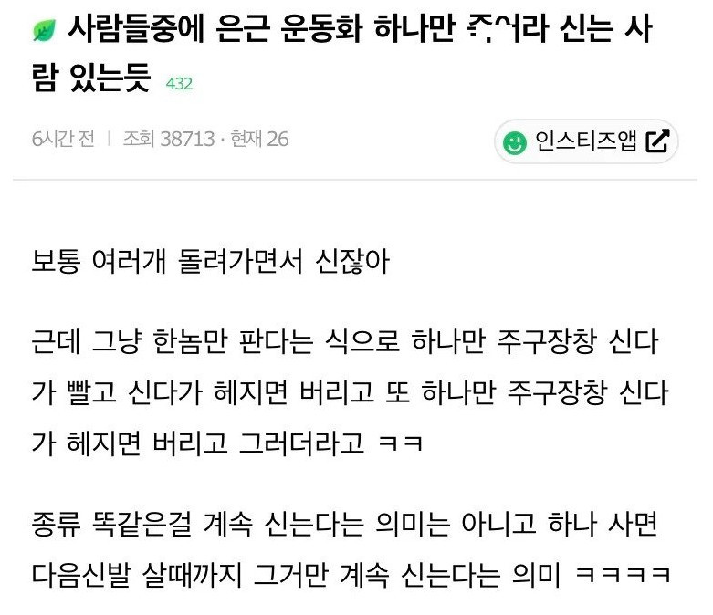은근 운동화 하나만 죽어라 신는 사람 있는듯 컨텐츠 정보 6 조회 0 추천 목록 관리 글수정 글삭제 본문 0 추천 관련자료 이전 인생에 중요한 것은 부 vs 명예 작성일 2025.10.18 22:37 다음 1원 더 벌려다가 배달어플 평점 1.5점으로 시작하는 가게.jpg 작성일 2025.10.18 22:31 목록으로 < 이전 글 다음 글 > 댓글 0 등록된 댓글이 없습니다. Select File Upload File 목록 관리 글수정 글삭제 검색대상 제목내용제목+내용글쓴이글쓴이(코) 그리고 또는 검색어 검색하기 전체 279,863 / 1 페이지 RSS 게시물 정렬 날짜순 조회순 추천순 게시판 검색 번호 제목 날짜 조회 추천 번호279863 히키코모리지만 존경할만한 사람 등록일 10.18 조회 8 추천 0 번호279862 외국에 이쁘다고 올라온 한국의 풍경 등록일 10.18 조회 8 추천 0 번호279861 인생에 중요한 것은 부 vs 명예 등록일 10.18 조회 3 추천 0 열람 은근 운동화 하나만 죽어라 신는 사람 있는듯 등록일 10.18 조회 7 추천 0 번호279859 1원 더 벌려다가 배달어플 평점 1.5점으로 시작하는 가게.jpg 등록일 10.18 조회 7 추천 0 번호279858 우리나라만 먹는다는 음식 등록일 10.18 조회 6 추천 0 번호279857 UDU 출신이 말하는 특수부대 구타 썰 (feat.덱스) 등록일 10.18 조회 5 추천 0 번호279856 트럼프 국빈 방한 때 훈장 수여 추진 등록일 10.18 조회 4 추천 0 번호279855 오늘자 디시에 헤드폰 질문하러 온 여자 등록일 10.18 조회 2 추천 0 번호279854 오늘 오픈한다는 메이플아지트 PC방 등록일 10.18 조회 2 추천 0 번호279853 펨코당 "캄보디아 송환청년은 사회의 희생자" 등록일 10.18 조회 3 추천 0 번호279852 여자를 골라보라는 릴스에 댓글을 남긴 40대 남성 등록일 10.18 조회 5 추천 0 번호279851 츄랑 데이트하는 남친 시점 등록일 10.18 조회 7 추천 0 번호279850 안성재 셰프도 사용한다는 국산 조미료 등록일 10.18 조회 3 추천 0 번호279849 일본 신오쿠보 여자 덕후들의 한 달 덕질 비용 등록일 10.18 조회 4 추천 0 번호279848 의외로 30넘어서도 은근 많다는 부류 등록일 10.18 조회 4 추천 0 번호279847 승무원들에게 무료로 개방되는 동네 헬스장 등록일 10.18 조회 4 추천 0 번호279846 극 I인 김지원의 놀토 촬영 초반&후반 비교 등록일 10.18 조회 2 추천 0 번호279845 중국인 학살에 가담한 일본군출신 인터뷰 등록일 10.18 조회 6 추천 0 번호279844 브리트니 스피어스 입장문 올라옴 등록일 10.18 조회 4 추천 0 번호279843 니가 원탑해라.. 오늘자 한복 입은 장원영 등록일 10.18 조회 7 추천 0 번호279842 자영업5년차 느끼는 점 등록일 10.18 조회 7 추천 0 1(current) 2345678910(next)(last)